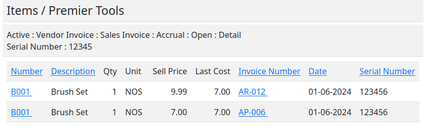 While SQL-Ledger excels in many aspects of serial number management, it’s important to acknowledge a notable limitation: the absence of validation for serial numbers. Currently, if a user enters a serial number in a sales invoice for an item that has not been recorded as purchased, SQL-Ledger will not raise an error. This lack of validation could potentially lead to discrepancies in inventory tracking and reporting if not carefully monitored.